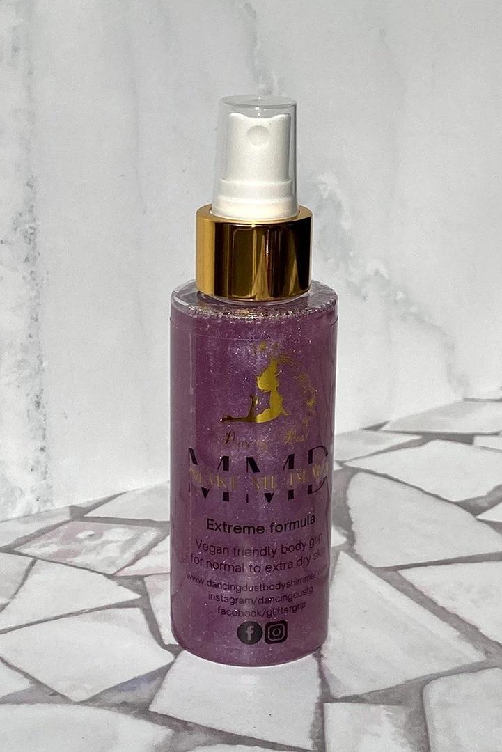 Application: Shake well before use. The glitter will settle and needs a little waking up. Spray onto the skin and apply a thin layer. More layers can be added for more intensity. Let dry for 30-60 seconds. Not advised for hand use.