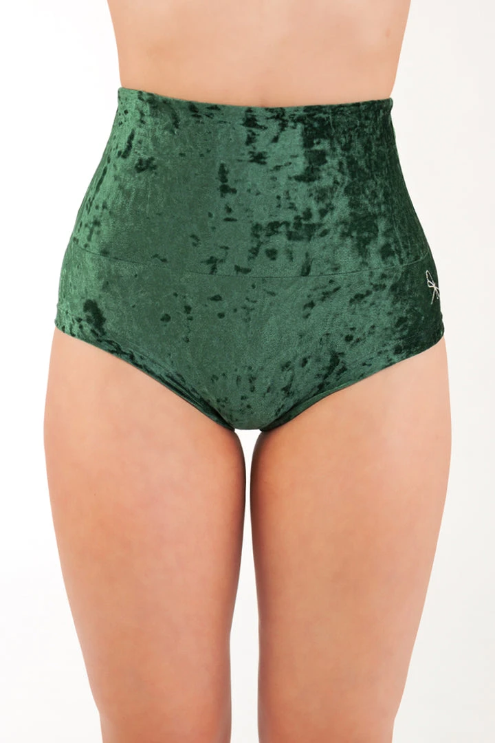 Velvet high waist shorts that can be worn high ultra high or folded down. Perfect for keeping warm in the winter months without stopping you nailing ticks that require side grip.