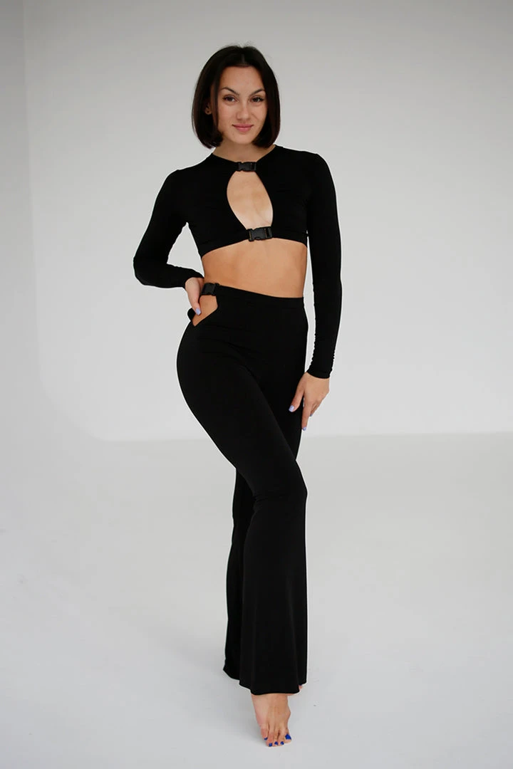 Styled with the Exo Wear Long Sleeve Buckle Front Top in Black!