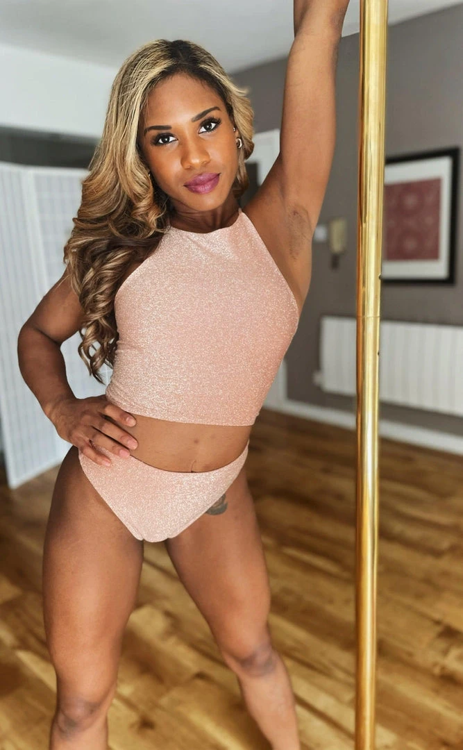 To shine from tip to toe – team with the Exo Wear’s Lurex High Waist Shorts in Rose Gold.