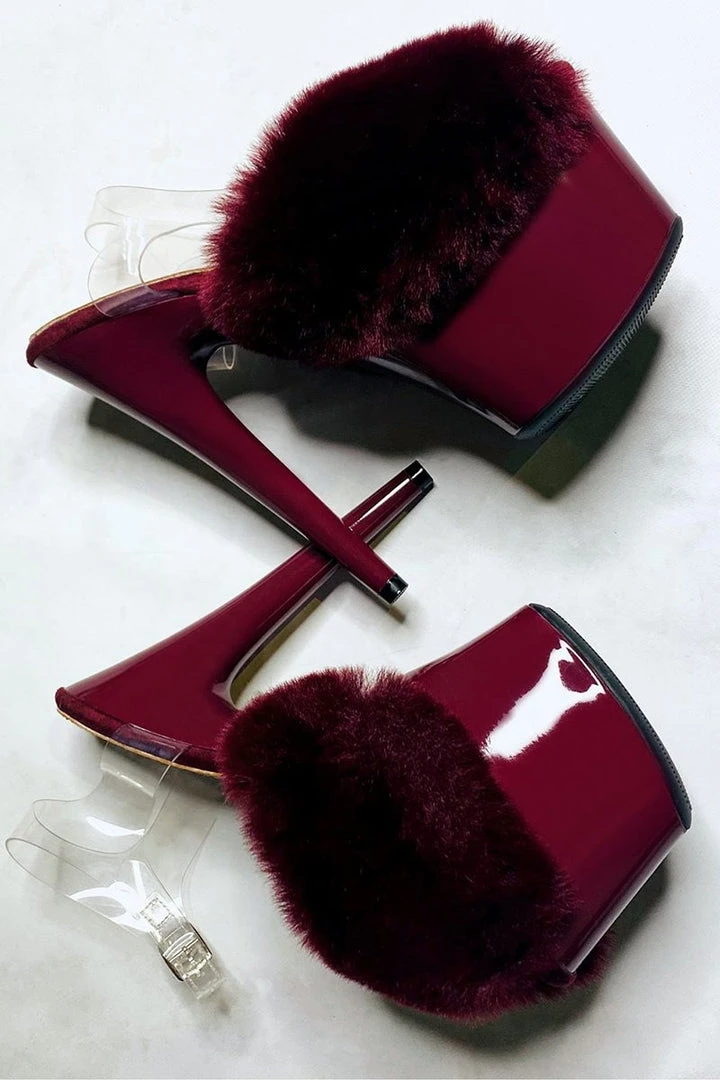 Sleek Merlot Red platform and the softest faux fur, we’ve levelled up your casual slides!