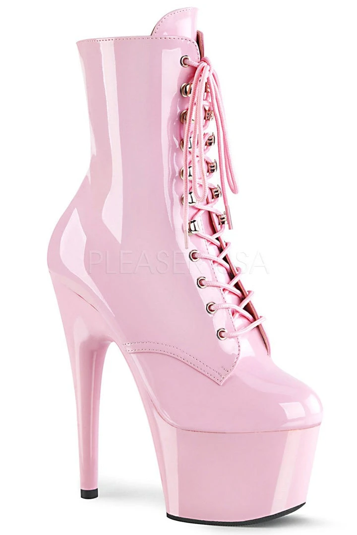- Patent red Platform Lace-Up Front Ankle Boot, Inside Zip Closure