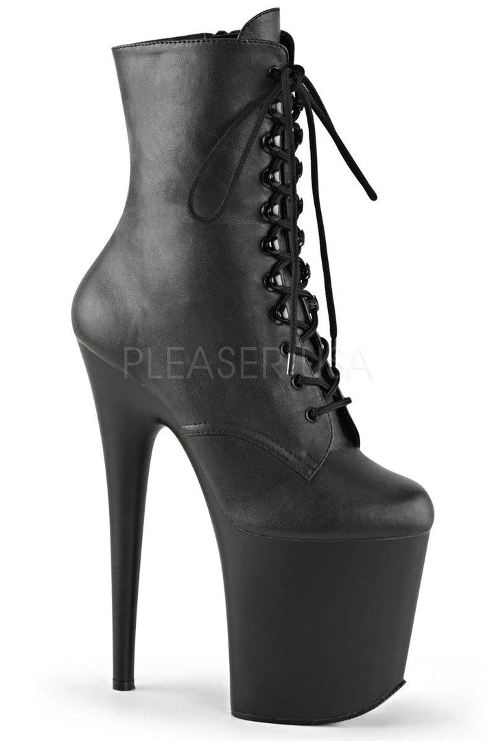 - Matte Black Platform Lace-Up Front Ankle Boot, Inside Zip Closure