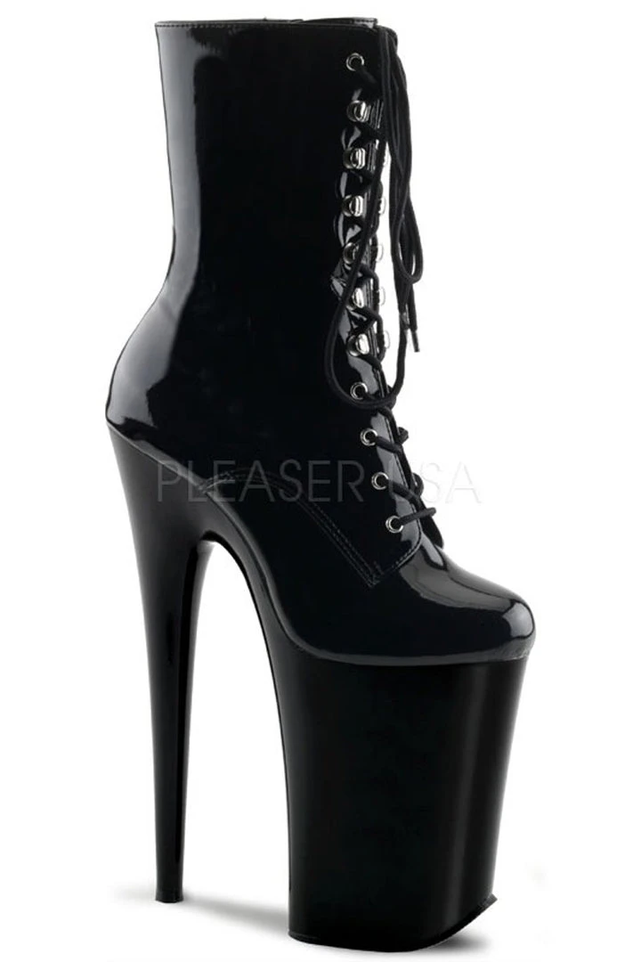- Patent Black Platform Lace-Up Front Ankle Boot, Inside Zip Closure