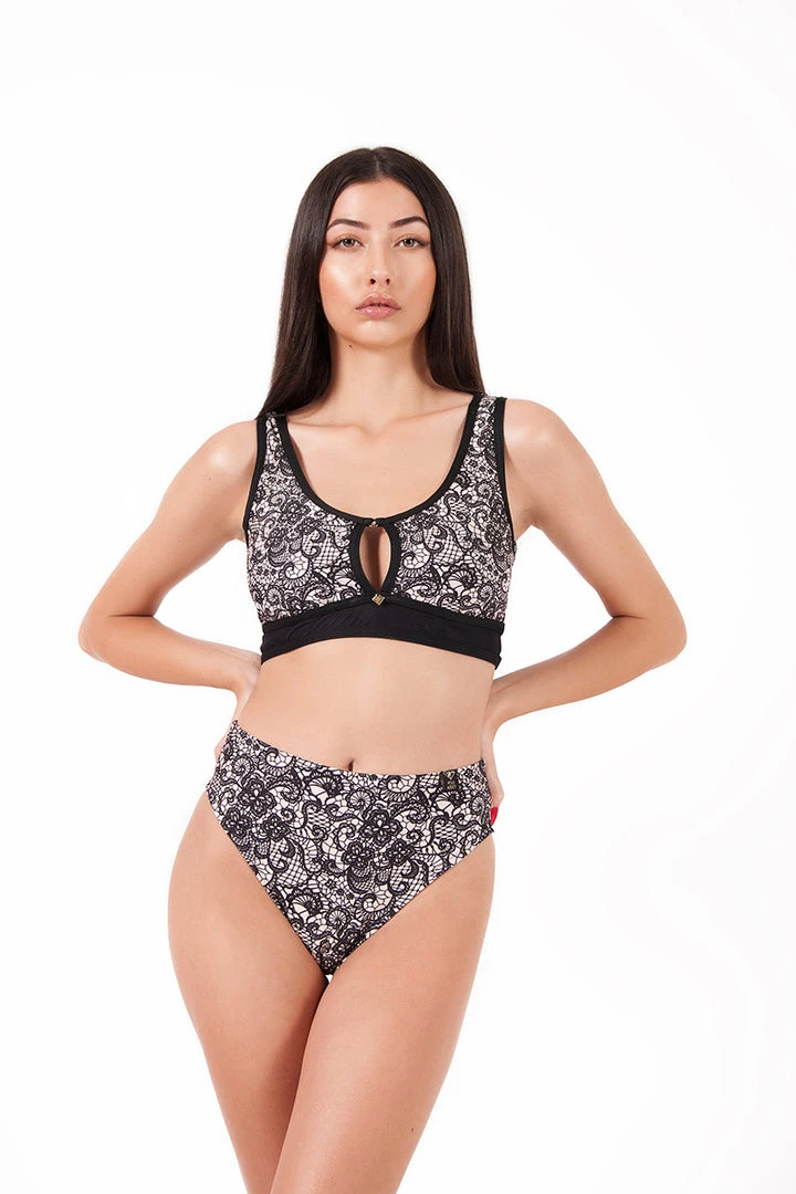 This scoop neck top featuring a mesh underbust band and keyhole cutout is going to make your look glorious without compromising on support and coverage. The skinny cross over back straps are our favourite design feature.