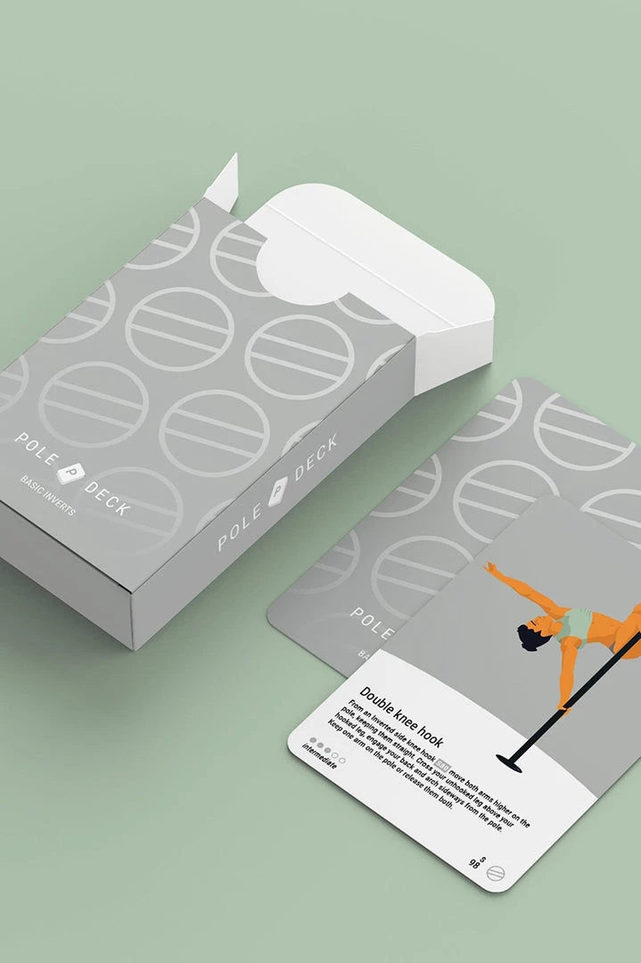 Basic Inverts are highly sought-after milestones in any pole dancer’s journey. These moves require a lot of core strength and willingness to move the body upside down, but they will unlock a whole new world of amazing tricks. You will find inverts as leg hangs, shoulder mounts, laybacks, and their variations. Some moves may seem impossible at first but the more you try, the stronger you become. Start with elementary tricks first, feel safe and try both sides, before trying more difficult tricks. The cards will give more advanced pole dancers the opportunity to combine different figures which will increase the difficulty. There is a short description and the level and category of the tricks on each card.