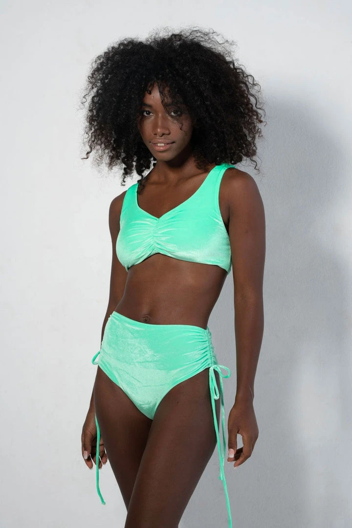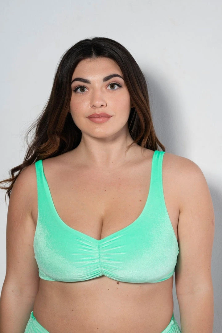 Paint your wardrobe with one of the most vibrant color this season. This is the brand new Moana top in velvet, YES VELVET, in the shade Apple Martini. This unique jelly green color is an instant mood lifter, made from luxurious creamy velvet; you’ll want to leave in it. Let’s us not forget that the Moana top offers regular support with thick over the shoulders straps and regular coverage with a flattering neckline.