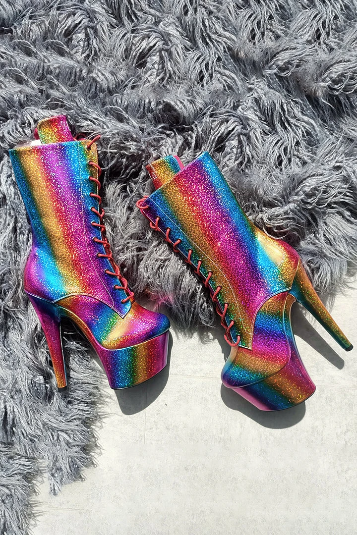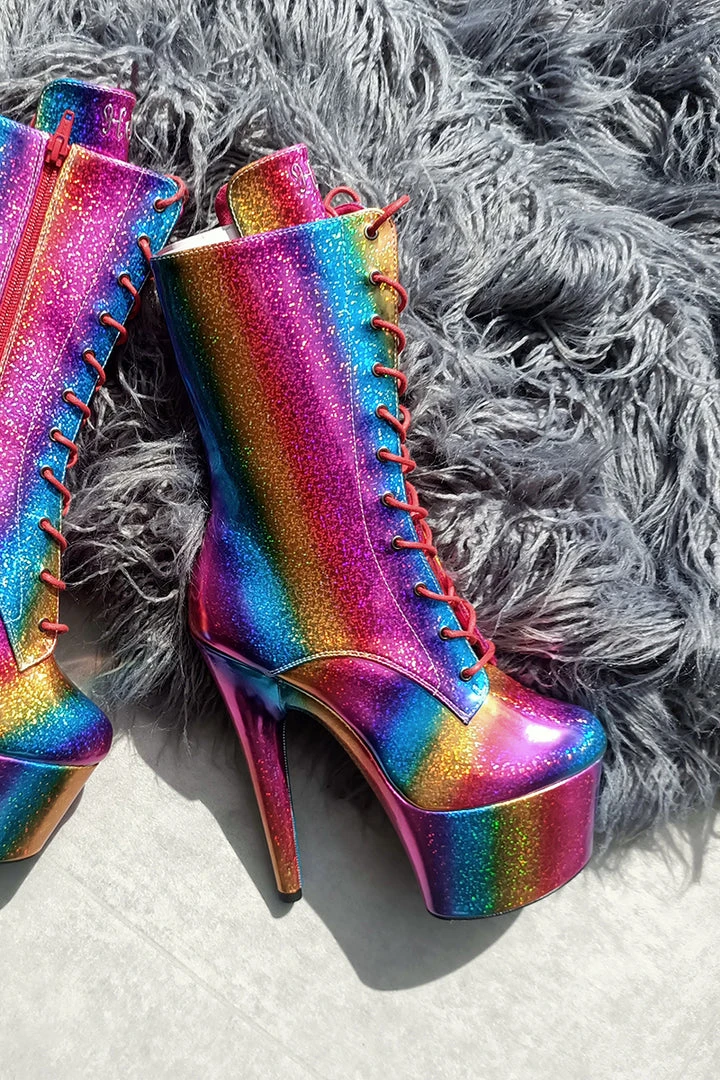✨ Rainbow Glitter Print exterior and plush raspberry interior